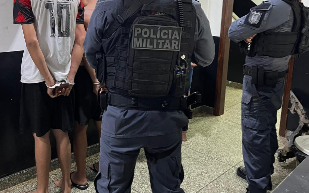 De posse das informações, os policiais se deslocaram até o local indicado e abordaram Júlio César Alves de Souza, de 20 anos, Manoel Raimundo Rigor Neto, também de 20 anos, além de dois adolescentes de 17 anos. Durante a abordagem, os suspeitos tentaram negar a prática criminosa, porém demonstraram nervosismo e inquietação, o que motivou a realização de busca pessoal e varredura na área.