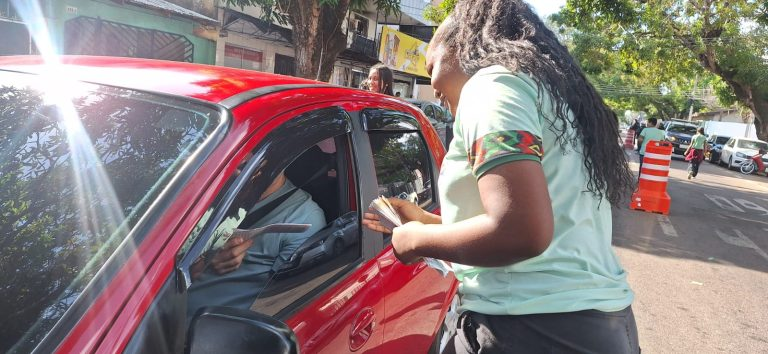 Logo cedo, em frente ao CCNA, uma blitz educativa mobilizou motoristas e pedestres na Rua General Rondon. Integrando a programação oficial do Encontro, a ação levou às ruas materiais informativos, conversas diretas e mensagens de enfrentamento à discriminação racial — reforçando que racismo é crime e seu combate é responsabilidade coletiva.