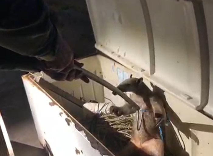 Na noite desta segunda-feira, 6, uma equipe do Batalhão Ambiental da Polícia Militar realizou o resgate de um tamanduá encontrado no quintal de uma residência no bairro Infraero, zona norte de Macapá.