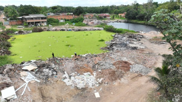 A situação é ainda mais grave devido à proximidade dos terrenos com o leito do igarapé, o que viola a legislação ambiental sobre distanciamento mínimo em áreas de APP. “Verificamos a formação de uma lixeira a céu aberto, sem qualquer planejamento ou separação de resíduos, além de crianças brincando nas proximidades, o que representa risco à saúde pública”, alertou o assessor técnico João Matos.