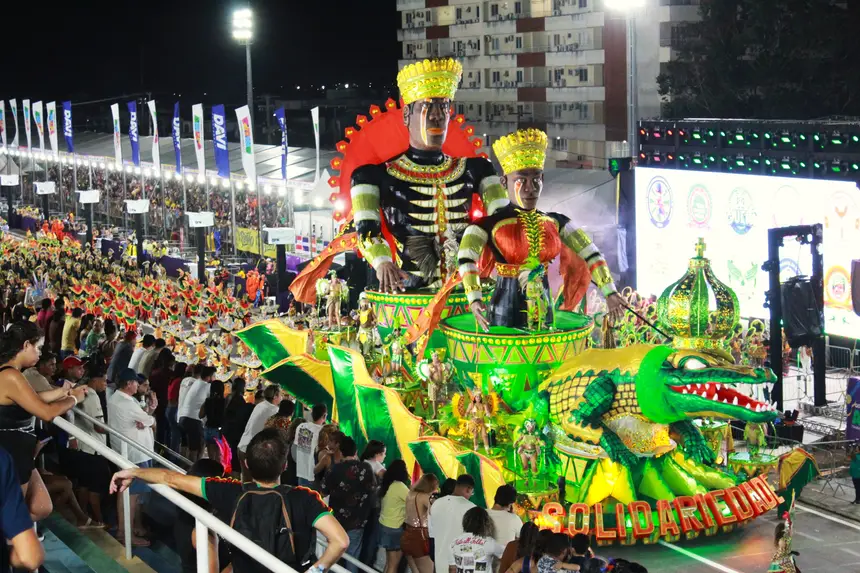 Foi realizado neste sábado, 14, no Sambódromo Ivaldo Veras, em Macapá, o último dia de desfiles das escolas de samba do Carnaval 2026. A noite foi marcada por enredos fortes, apresentações de alto nível técnico e uma celebração da ancestralidade, da cultura popular e das identidades amazônicas, com as apresentações de Solidariedade, Império da Zona Norte, Império do Povo, Piratas da Batucada e Piratas Estilizados.