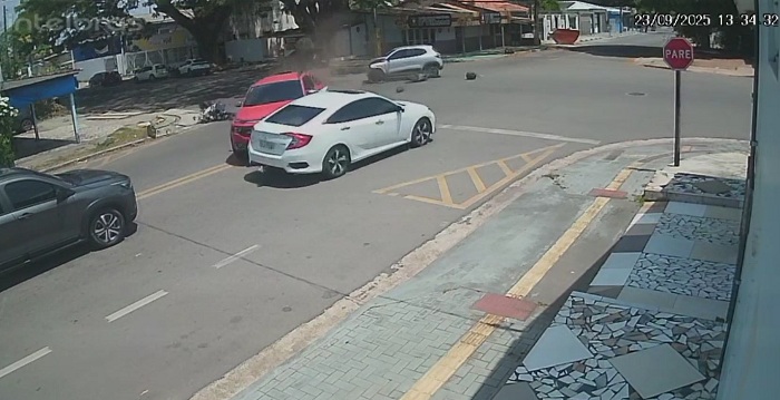 Imagens de câmeras de segurança registraram o momento da colisão.