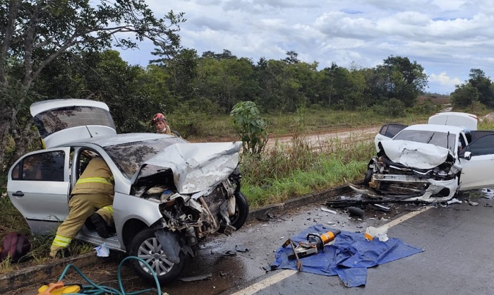 Colisão frontal entre dois carros deixa seis feridos na BR-156; VÍDEO