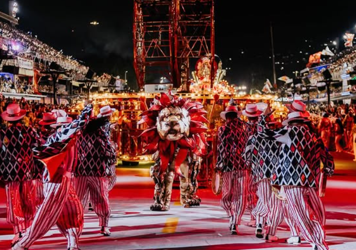 Da comissão de frente — que encantou com onças iluminadas — ao encerramento do desfile, a escola levou cerca de 3 mil componentes, distribuídos em 27 alas, cinco alegorias e um tripé.