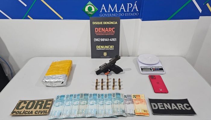 Na noite deste sábado, 15, a Delegacia Especializada de Repressão a Narcóticos (Denarc), com apoio da Coordenadoria de Operações e Recursos Especiais (CORE), prendeu em flagrante um homem de 24 anos pelos crimes de tráfico de drogas e posse ilegal de arma de fogo e munições de uso restrito, no bairro Marco Zero, zona sul de Macapá.