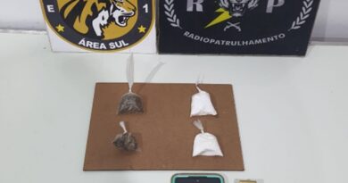 Ainda no sábado, por volta das 16h, a equipe policial foi acionada para atender uma outra ocorrência, desta vez no bairro Paraíso. A PM recebeu informações de que um homem estaria comercializando drogas e portando uma arma de fogo na Avenida São Paulo Apóstolo.