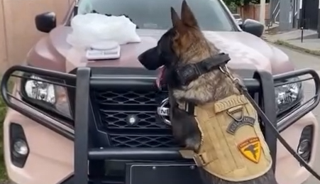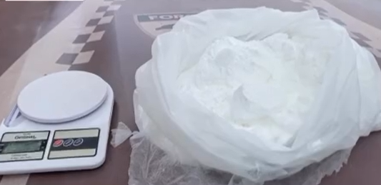 Durante a ação, o cão policial indicou a presença de drogas, sendo apreendidos aproximadamente 4 quilos de substância análoga à cocaína.