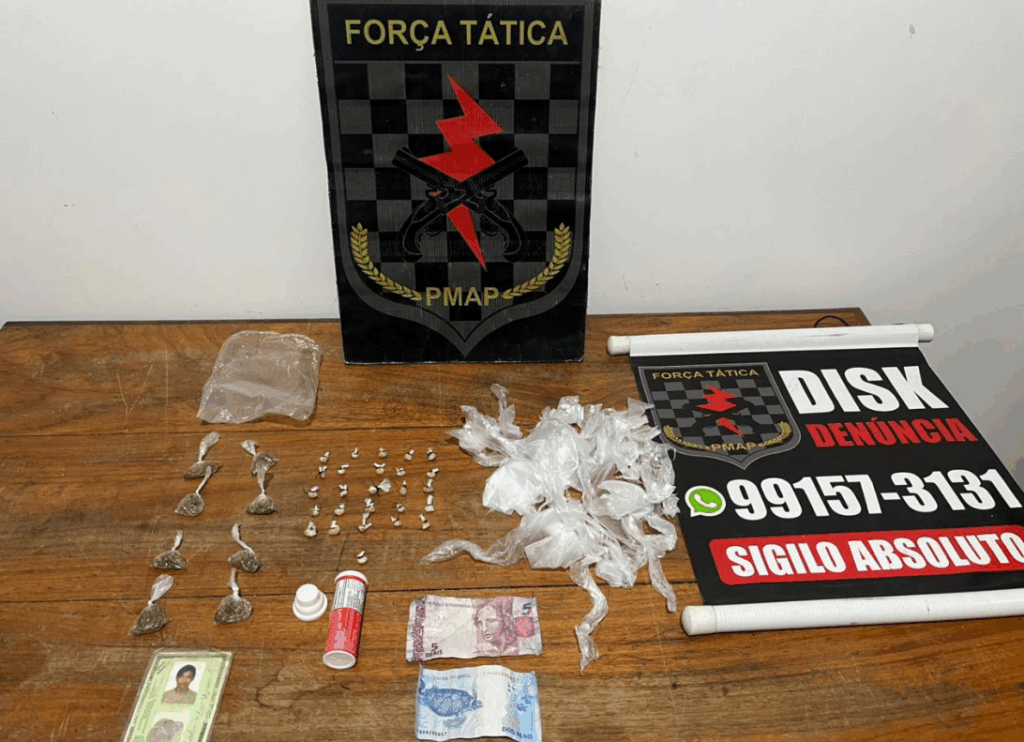 Ele estava com mandado de prisão preventiva em aberto por violência doméstica. Durante a abordagem, tentou se desfazer de porções de crack e maconha.