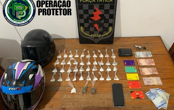 Durante a revista, os policiais encontraram diversas porções de substâncias supostamente entorpecentes, entre maconha e cocaína. Parte do material ilícito estava escondida dentro do capacete utilizado pelo suspeito, numa tentativa de despistar a fiscalização.