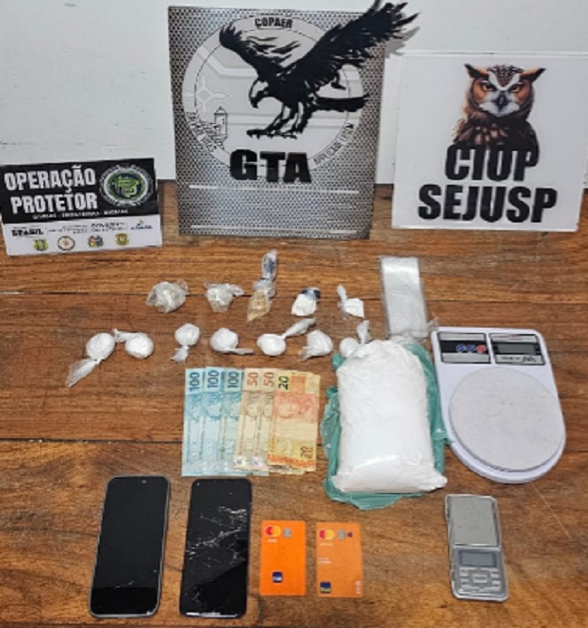 A negociação avançou após a intervenção de um cidadão, que se apresentou como pastor e conhecido do suspeito. Ele conseguiu convencer Valter a se entregar. No interior do imóvel, os policiais apreenderam três aparelhos celulares — um deles danificado pelo próprio suspeito — além de substâncias entorpecentes e outros materiais utilizados no tráfico.