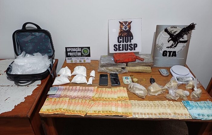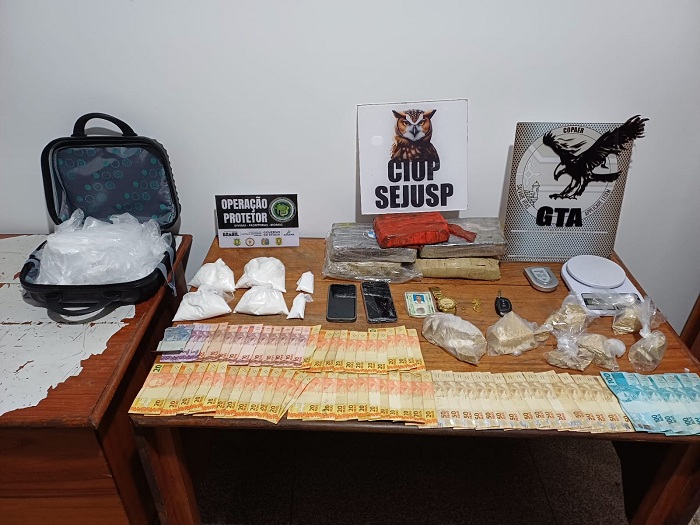 Questionados sobre a existência de mais material ilícito, um dos abordados afirmou que em sua residência havia outras drogas e se comprometeu a apresentá-las voluntariamente. A equipe então se dirigiu até a casa indicada, localizada na Avenida Carlos Almeida de Souza, no bairro Jardim I, zona norte da capital. No local, foram encontrados vários tabletes de entorpecentes, balanças de precisão, material para embalagem e R$ 2.232 em dinheiro.