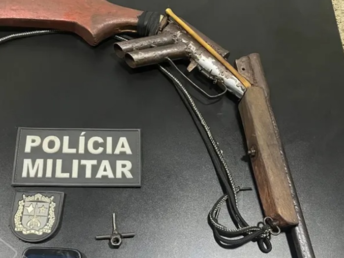 Ao chegar ao local, os policiais encontraram o homem sentado em frente à própria casa. Durante a abordagem, confirmaram a denúncia e localizaram, no interior da residência, uma espingarda calibre 12 e munições supostamente utilizadas no crime.