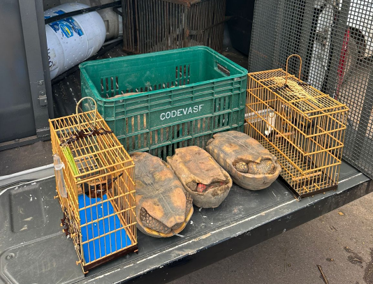 De acordo com a polícia, o suspeito mantinha em casa um cativeiro irregular com animais silvestres, incluindo quelônios e aves passeriformes.