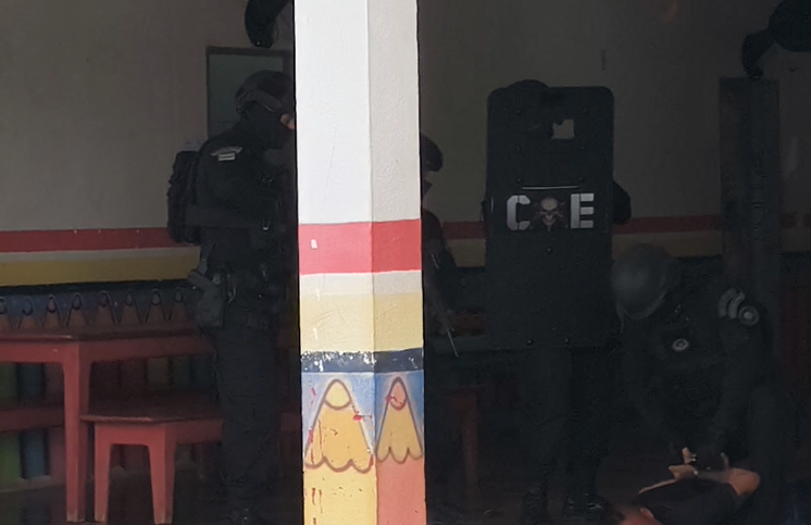 Ao ser alcançado, o suspeito reagiu e fez uma funcionária refém, iniciando uma crise que exigiu a atuação especializada do Batalhão de Operações Especiais. O plano de gerenciamento de crises foi acionado, e as negociações começaram ainda no início da tarde.