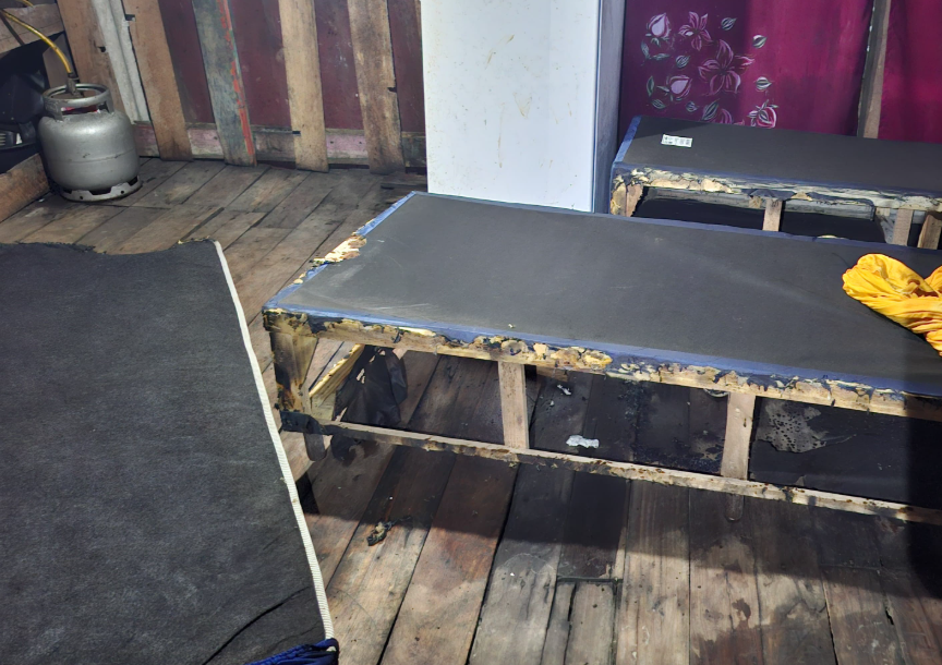 Durante a ação, foram identificados danos causados por tentativa de incêndio no imóvel, com objetos queimados, como cama, sapato e a mangueira de um botijão de gás. Também houve tentativa de atear fogo na porta do quarto onde as vítimas estavam.