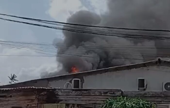 Vídeo que circula nas redes sociais mostra o momento do incêndio que destruiu pelo menos seis imóveis.
