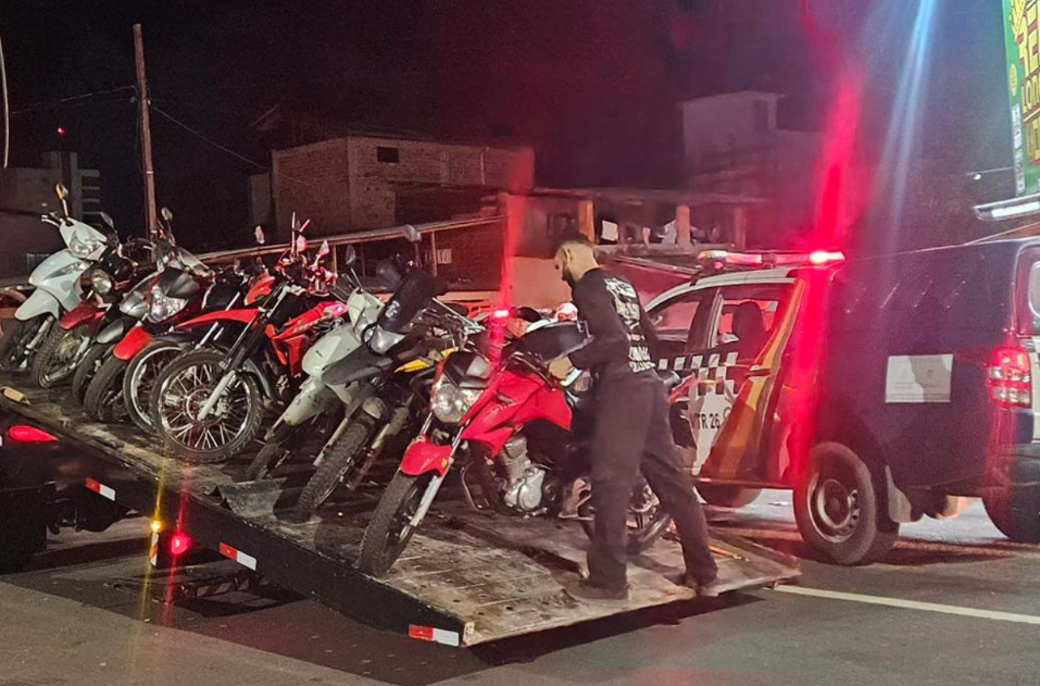 As equipes também apreenderam três carros e 16 motocicletas, além de autuar diversos estabelecimentos comerciais por funcionamento irregular, sem as devidas licenças.
