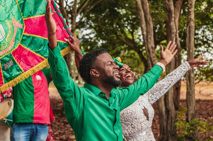 Um dos momentos mais emblemáticos do desfile será a presença do marabaixo na bateria da Mangueira. A tradicional caixa de marabaixo, símbolo da cultura afro-amazônica do Amapá, foi incorporada ao ritmo da escola, levando à Sapucaí um som ancestral que ecoa identidade, memória e pertencimento.