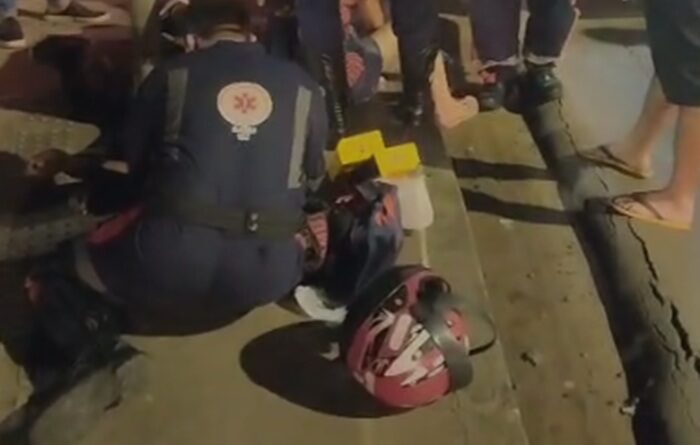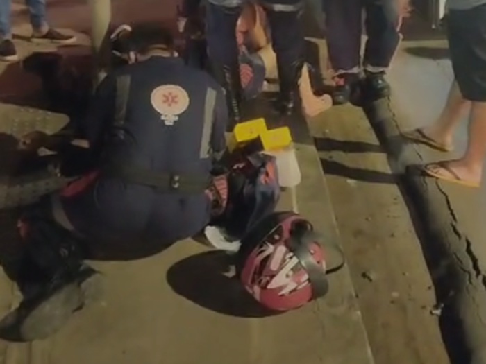 A passageira da motocicleta, de 41 anos, foi socorrida e encaminhada ao Hospital de Emergência (HE).