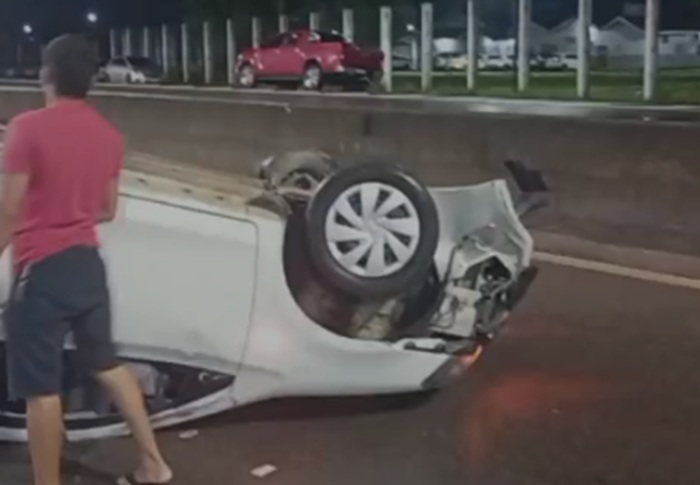 Um vídeo que circula nas redes sociais mostra o veículo capotado na rodovia, chamando a atenção de motoristas que trafegavam pela área. As circunstâncias do acidente serão apuradas pelos órgãos competentes.