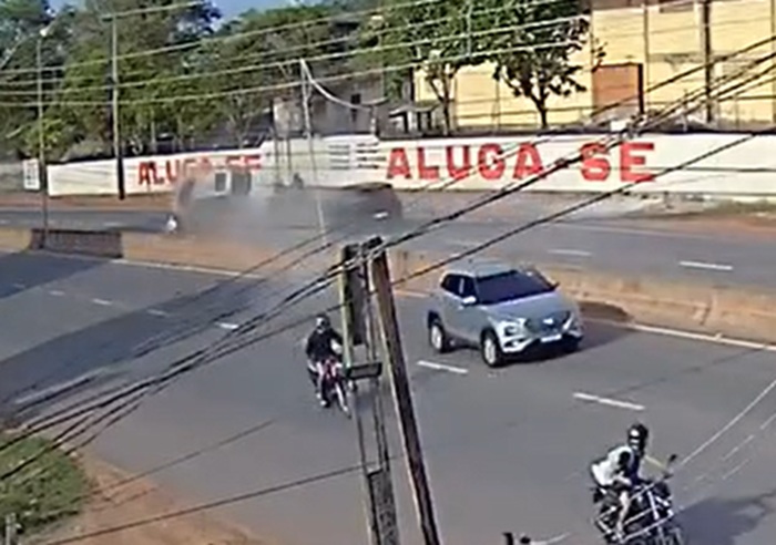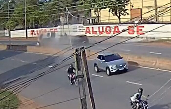 Imagens de câmeras de segurança mostram o momento do acidente.