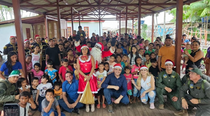 Um dos momentos mais aguardados da programação foi a chegada do Papai Noel Operacional do GTA, que desembarcou de helicóptero e encantou as crianças da comunidade. Na ocasião, mais de 350 brinquedos foram distribuídos, proporcionando alegria, emoção e um Natal inesquecível para os pequenos.