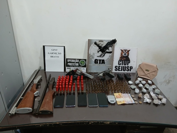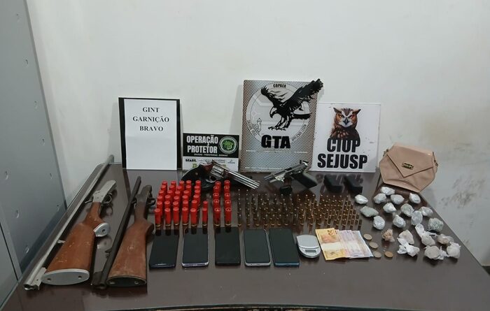 Uma operação conjunta do Grupo Tático Aéreo (GTA), do Centro Integrado de Operações (CIOP) da Secretaria de Justiça e Segurança Pública (Sejusp) e da Polícia Penal desarticulou, na tarde desta segunda-feira, 23, uma organização criminosa que atuava no município de Santana. A ação resultou na prisão de três adultos, na apreensão de três adolescentes e na retirada de um arsenal de armas, munições, drogas e outros materiais ilícitos de circulação.