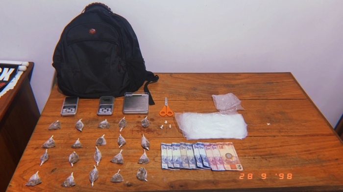 Dentro da mochila, os policiais ainda encontraram materiais utilizados para fracionamento e acondicionamento de drogas, como balança de precisão, embalagens plásticas e uma tesoura. Diante dos fatos, o suspeito recebeu voz de prisão.