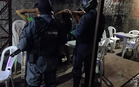 A equipe realizava patrulhamento pela via principal do conjunto habitacional quando se aproximou de um comércio já conhecido por denúncias de comercialização de entorpecentes e movimentação ligada a grupos criminosos. Ao notar a presença policial, várias pessoas tentaram deixar o local rapidamente, mas os militares conseguiram fazer o cerco e realizar as abordagens.