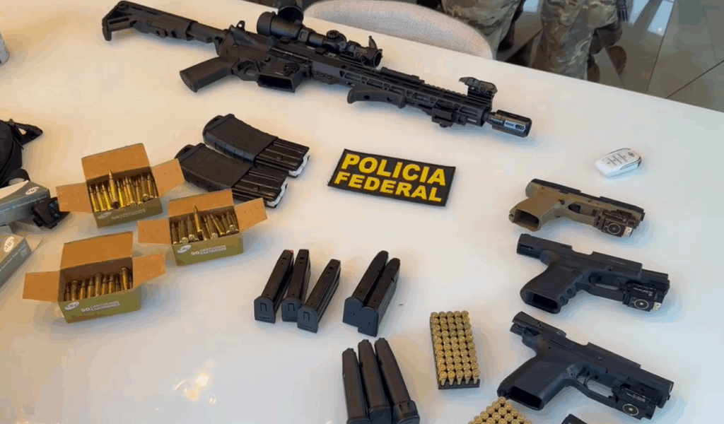 Durante as buscas, a PF apreendeu três pistolas, um fuzil calibre 5.56 e cerca de 250 munições em Macapá. O dono do armamento é CAC (colecionador, atirador e caçador), mas a corporação já iniciou o processo para cassar o registro.