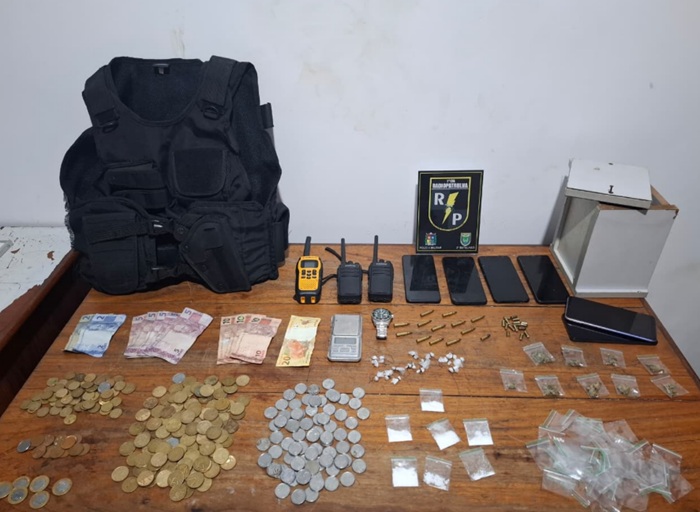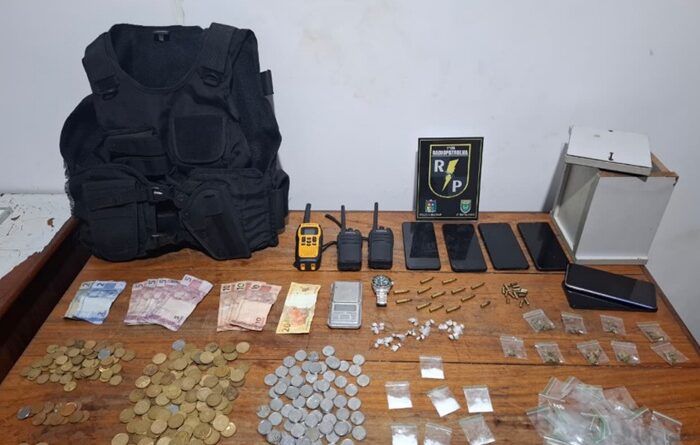 PM prende suspeitos por tráfico e apreende rádios comunicadores, colete balístico e munições no Morada das Palmeiras