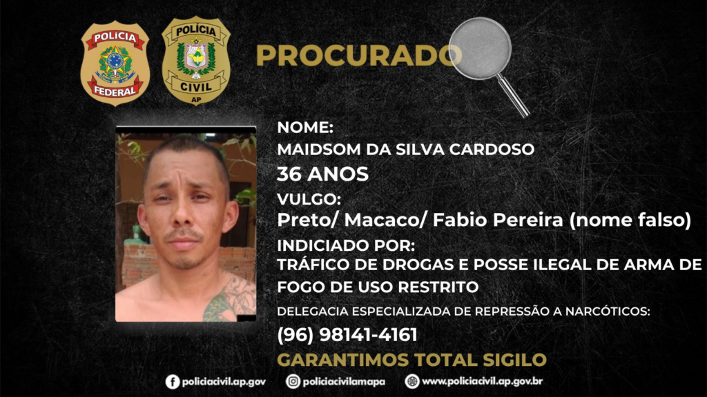 A população pode colaborar com informações sobre o paradeiro dos suspeitos pelo WhatsApp da Denarc: (96) 99814-14161, com garantia de sigilo absoluto.