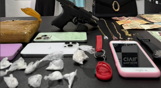 O agente solicitou apoio das equipes e realizou o acompanhamento tático até uma residência no mesmo bairro. Durante a busca, foram apreendidos uma arma de fogo, drogas, dinheiro, a motocicleta utilizada pelos suspeitos e outros objetos sem comprovação de origem lícita.