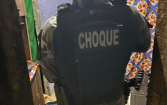 Com base nas informações, as equipes se dirigiram a residência onde o suspeito estaria escondido. Durante a aproximação do imóvel, policiais do Choque avistaram um homem armado com as características informadas. Ao notar a presença dos agentes, ele correu para dentro da casa.