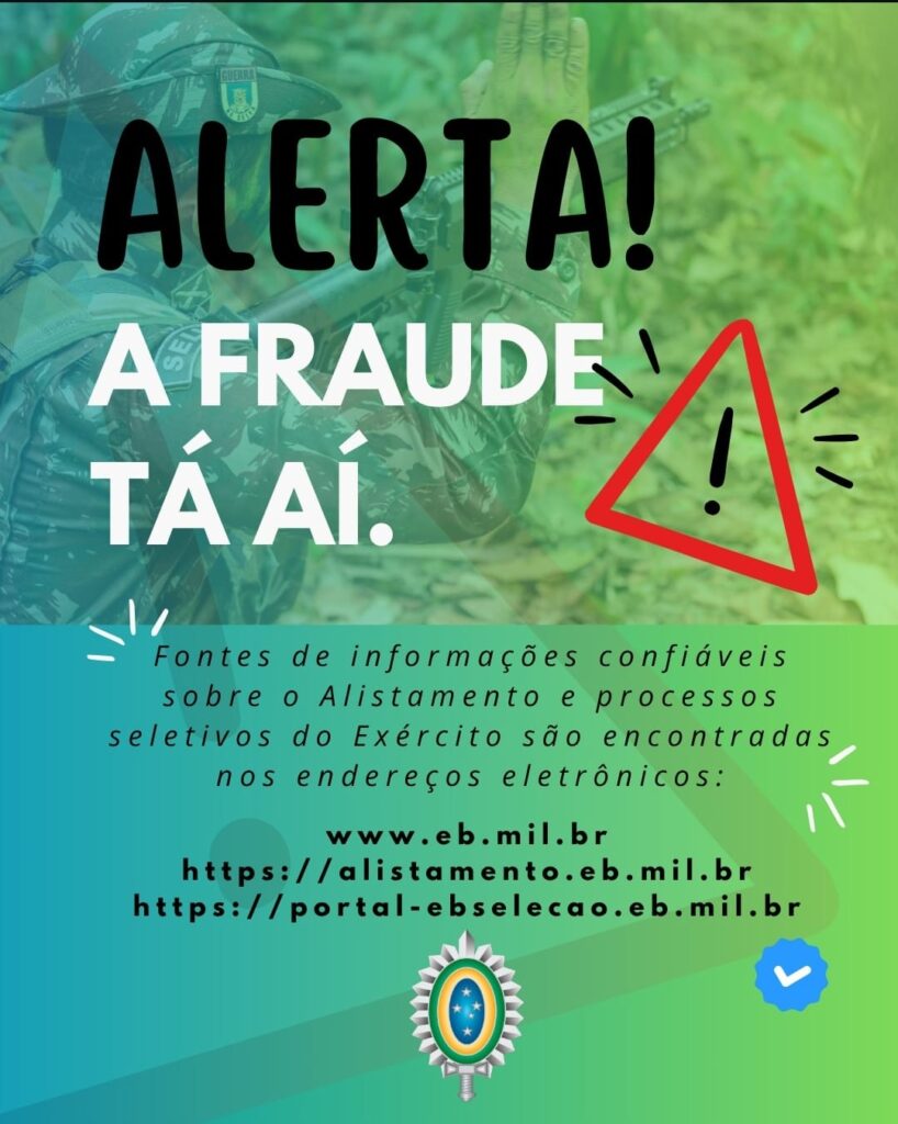 Nesse período, que envolve oportunidades de carreira ou prestação de serviços públicos, o Exército também faz um alerta sobre golpes virtuais. A orientação é para que os jovens fiquem atentos e evitem cair em fraudes digitais. As fontes oficiais e confiáveis sobre alistamento e processos seletivos do Exército estão disponíveis nos endereços eletrônicos listados no card abaixo:
