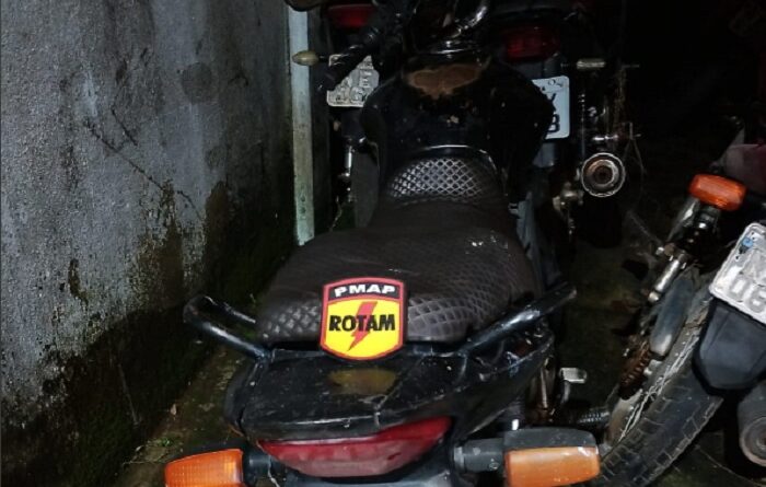 Durante operação no bairro Cidade Nova, região central de Macapá, equipes da Ronda Ostensiva Tática Motorizada (Rotam) realizaram a abordagem de um homem que estava com uma motocicleta estacionada em frente a um estabelecimento comercial. Ao consultar a placa, os policiais constataram que o veículo possuía restrição de roubo/furto.