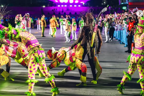 Um dos momentos mais marcantes do desfile foi a fusão do samba com o batuque do marabaixo, cujo ritmo ecoou pela Sapucaí como símbolo da identidade cultural do Amapá. Em um dos carros alegóricos, a imagem de Mestre Sacaca ganhou destaque, acompanhada por familiares, em uma homenagem carregada de emoção e representatividade. Com esse enredo, a Mangueira busca o seu 21º título no Grupo Especial do carnaval carioca.