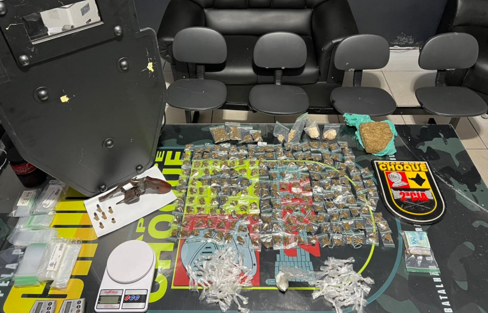 Na Travessa 4, um grupo de indivíduos foi abordado. Durante a ação, um dos suspeitos indicou o local onde guardava substâncias supostamente entorpecentes fracionadas e embaladas para venda, armazenadas em um pote vermelho, que posteriormente foi localizado pelos policiais.
