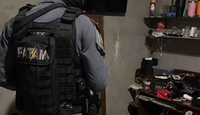 Diante da fundada suspeita e da tentativa de abordagem, os policiais ingressaram no imóvel, momento em que visualizaram o homem portando uma arma de fogo, apontada em direção à equipe, com tentativa de disparos contra os agentes.