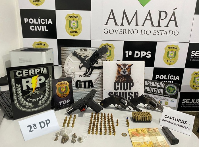 Na ação, foram apreendidas armas, munições, drogas e dinheiro.