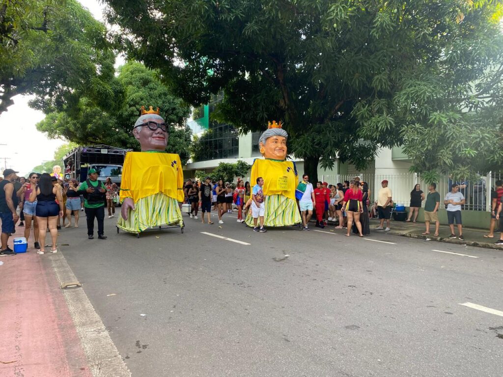 Tradição, bonecos gigantes e multidão: veja FOTOS e VÍDEO da passagem do Bloco ‘A Banda’ pelas ruas de Macapá
