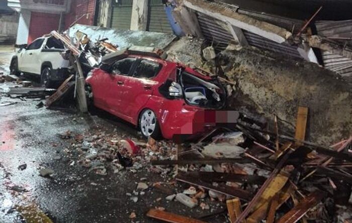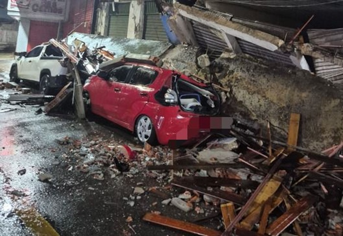 Apesar do susto, ninguém ficou ferido. No momento do desabamento não havia pessoas no interior do prédio nem nos veículos atingidos.
