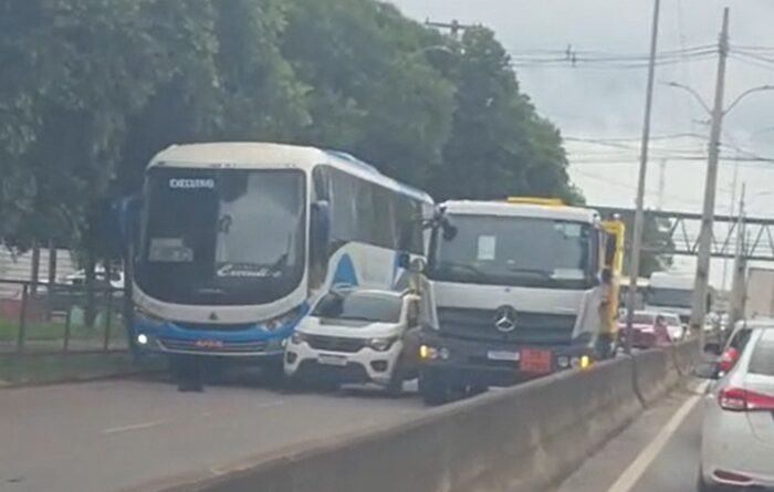 Com os três veículos bloqueando a via, outros motoristas precisaram realizar desvios, o que causou lentidão no trânsito da rodovia.