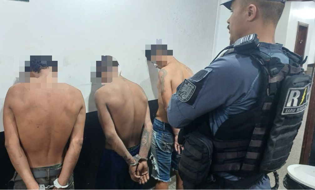 Com base nas informações, equipes da PM foram até um apartamento no Residencial Vila das Oliveiras, onde localizaram e prenderam os três envolvidos. Um deles tentou resistir à prisão, sendo necessário o uso moderado da força. Outro foi encontrado escondido dentro de um armário e o terceiro em um colchão box.
